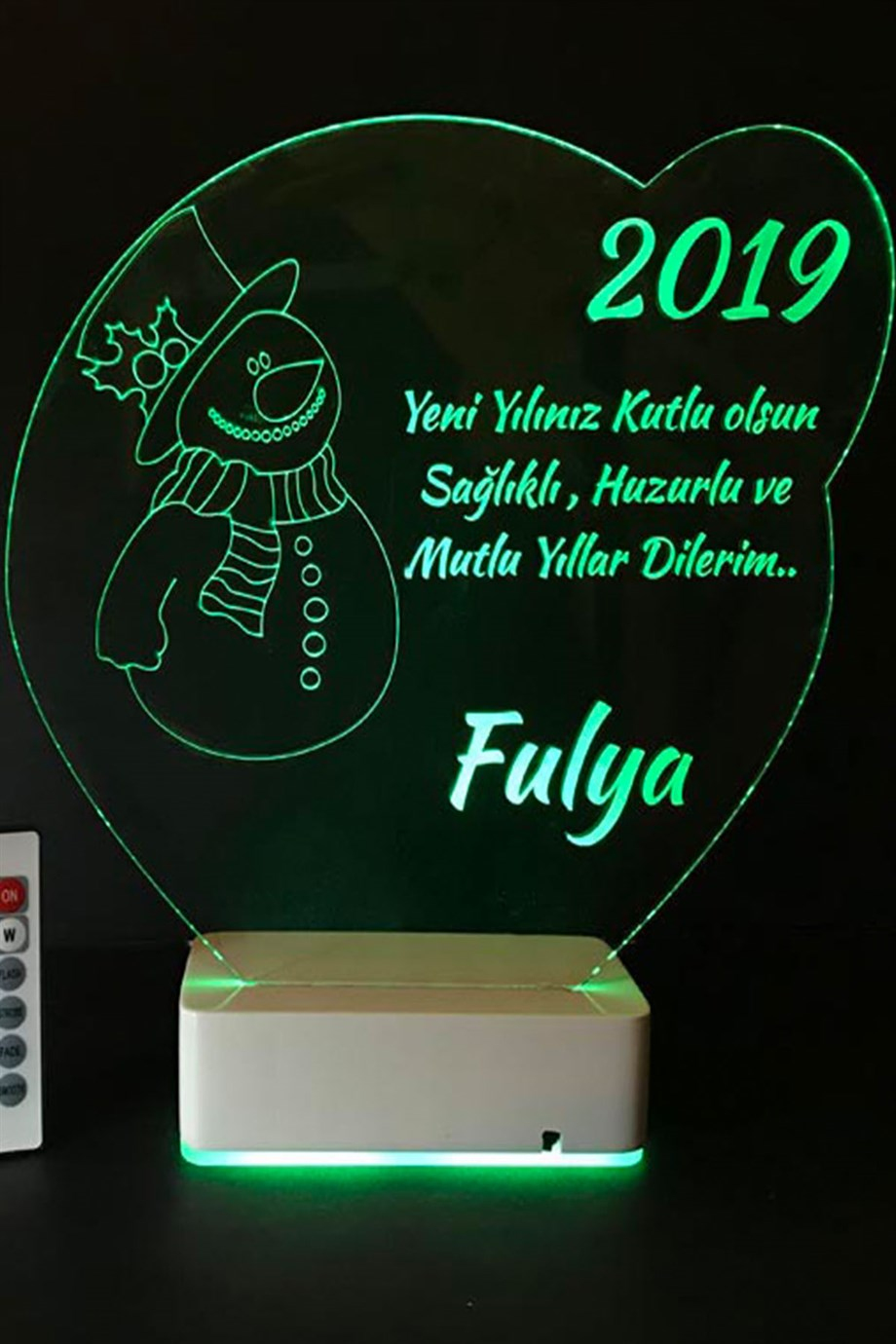 Kişiye Özel 3D Kardan Adam Kalp 16 Renk Dekoratif Led Lamba